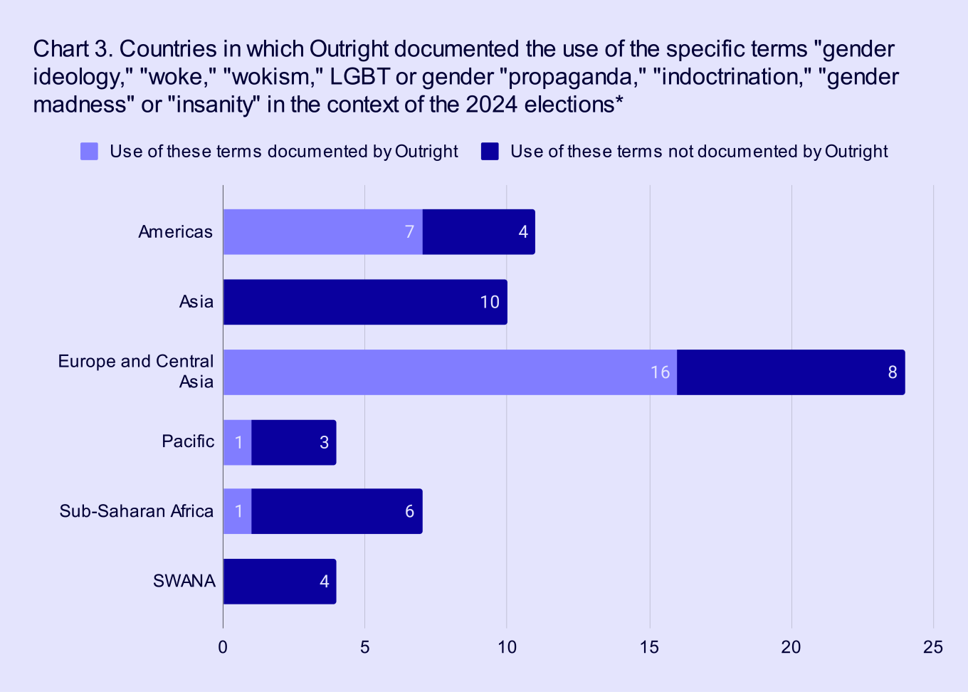 *Outright did not have the capacity to monitor all political discourse in all languages, and it is highly likely that in some of the other countries listed, similar terminology was used to disparage LGBTIQ people and broader social justice movements in the 2024 election context.